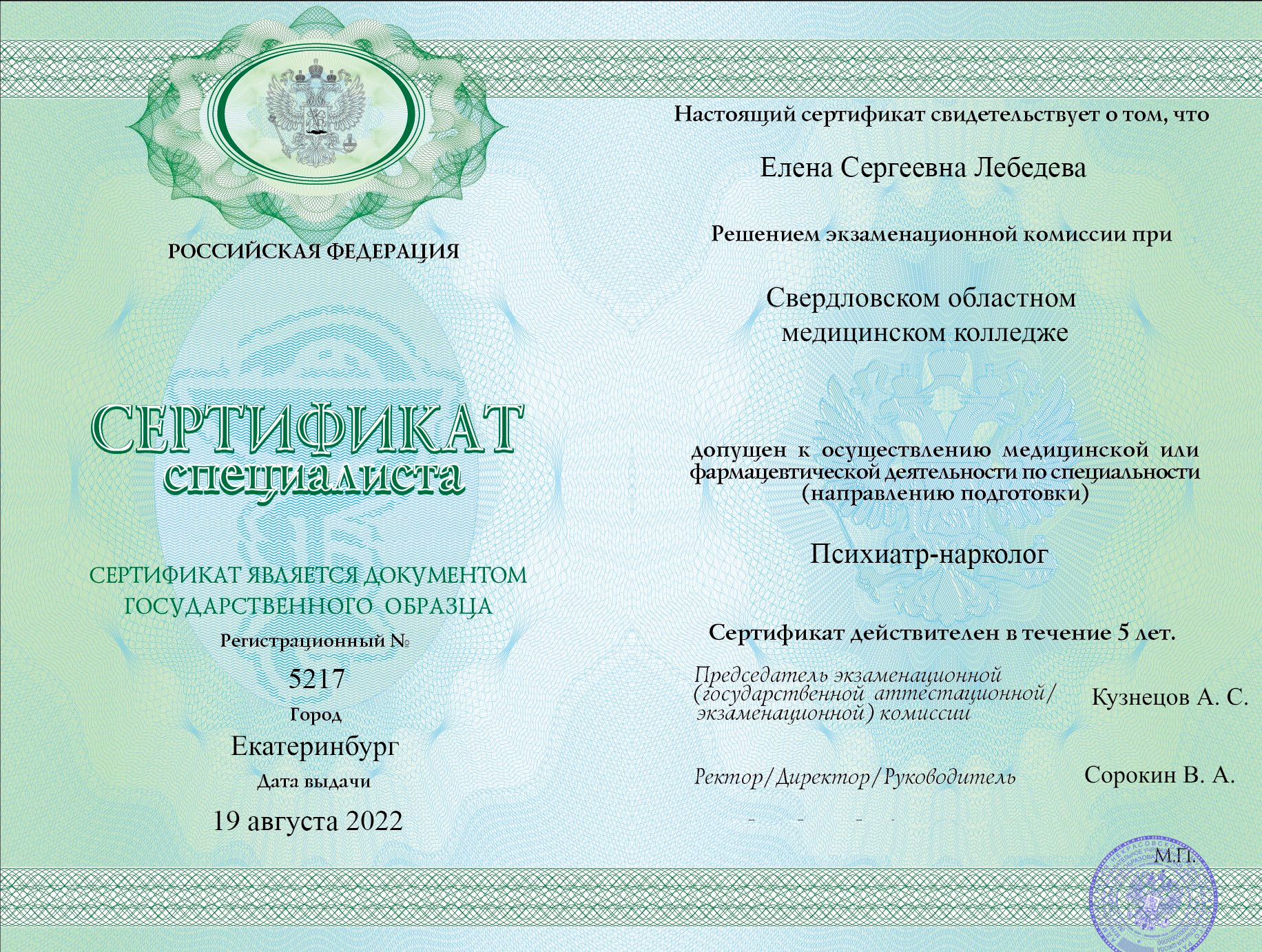 Елена Сергеевна Лебедева врач нарколог клиники доктора Стукаловой в Камышлове